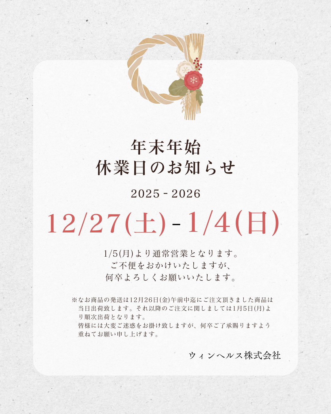【年末年始休業日のお知らせ】